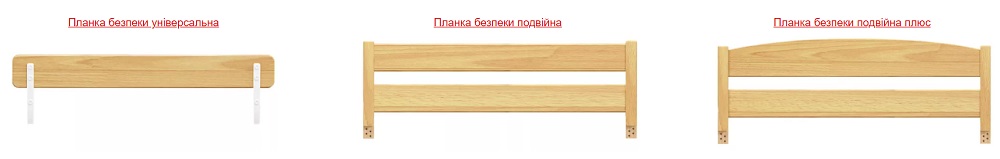 Ліжко «Аммі» також може комплектуватись захисною планкою, яка додатково оберігає дитину від випадіння. Для різних потреб доступні три типи планки, які можна підібрати залежно від індивідуальних потреб і побажань. (за доплату).