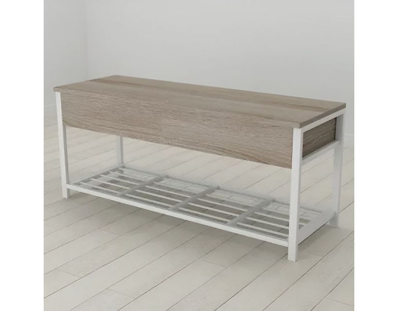 Ищете идеальное решение для вашего интерьера? Банкетка с ящиком Ferrum-decor Дрейк станет не только стильным акцентом, но и практичным элементом вашего пространства. Ее изящный белый металл в сочетании с нежным оттенком ДСП Сонома Трюфель создает гармоничный вид, подходящий для любого интерьера. Благодаря оптимальным размерам, эта банкетка легко впишется в вашу гостиную, коридор или спальню, добавляя уюта и комфорта.