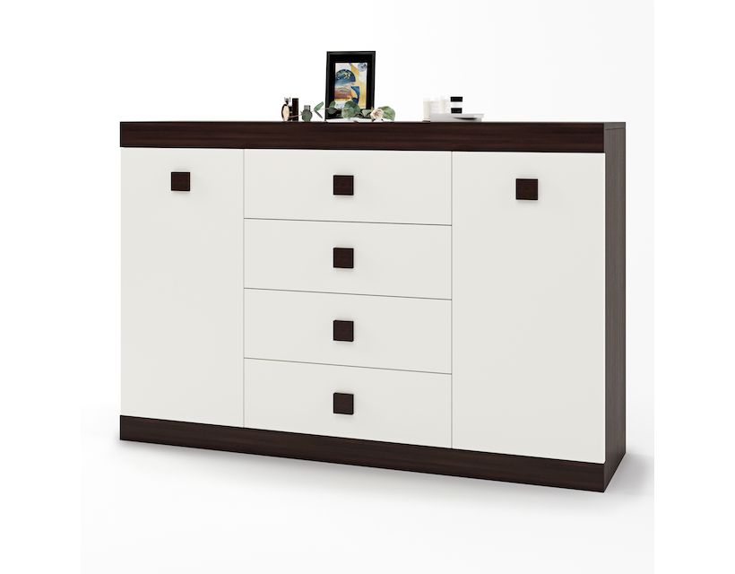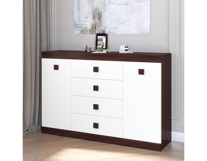 Ищете идеальное решение для хранения вещей? Большой комод Эверест на 4 ящика Соната-8 станет отличным выбором для вашего дома. Его элегантный дизайн в сочетании с темным венге и белым цветом легко впишется в любой интерьер, придавая ему современный вид. Благодаря продуманной конструкции комод не только практичный, но и эстетически привлекательный, что делает его идеальным дополнением к вашей комнате.