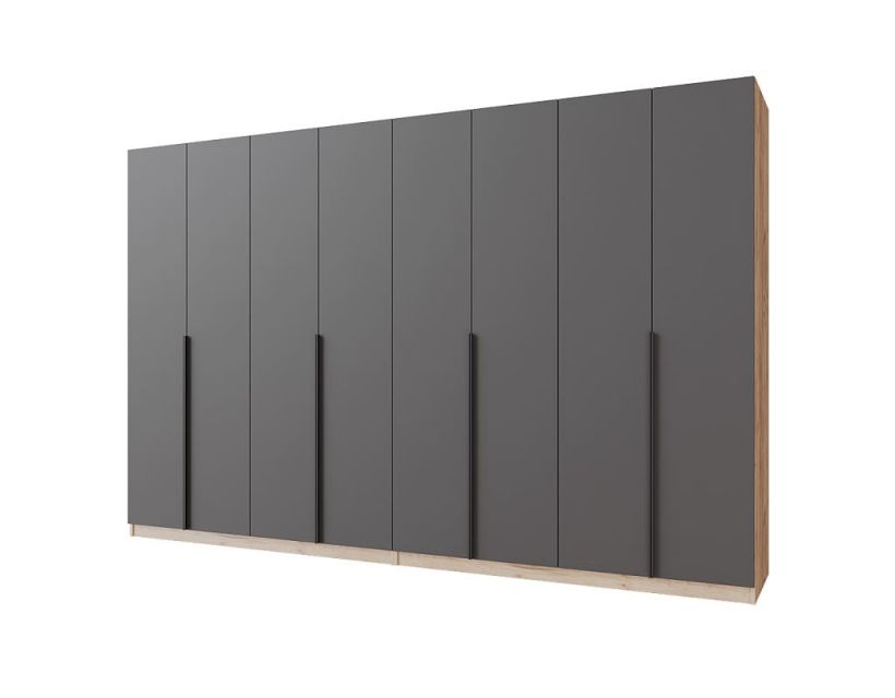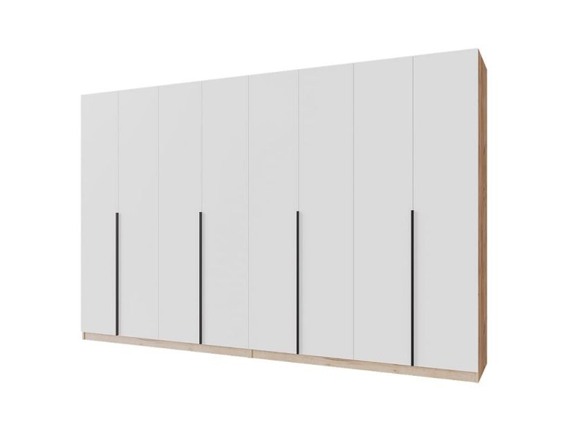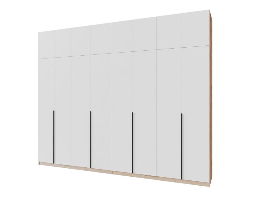Дизайн шкафа дополняют стильные металлические ручки высотой 950 мм. Эти ручки не только придают шкафу современный вид, но и удобны в использовании, обеспечивая комфортный захват.