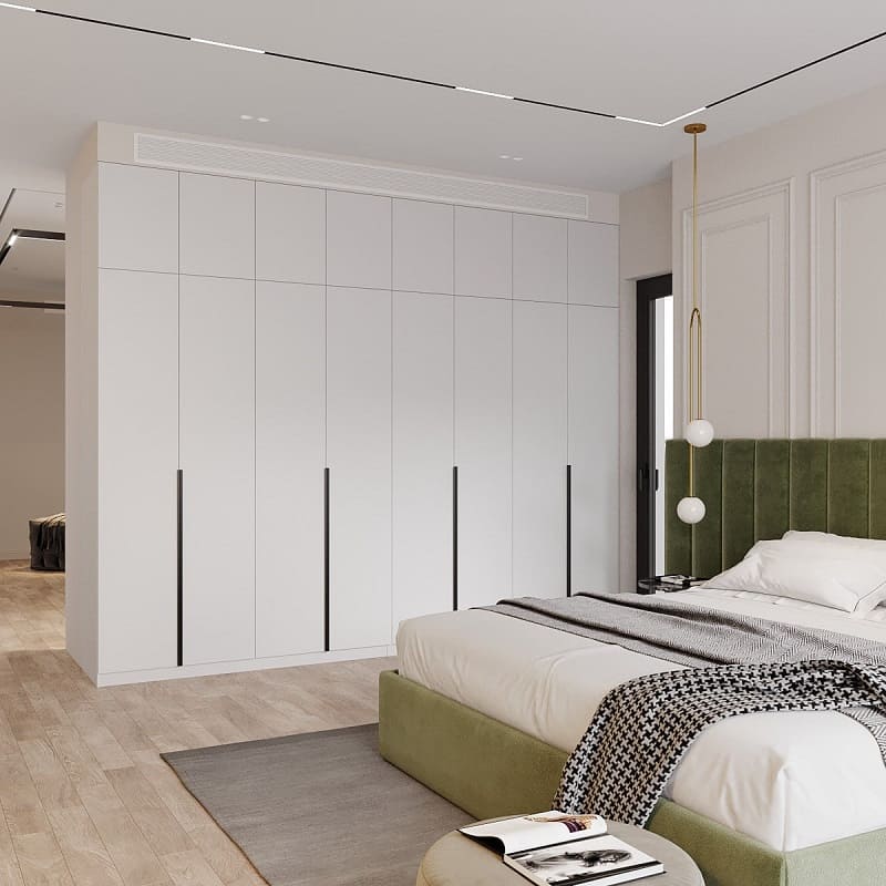 Наши шкафы оснащены топовой фурнитурой от Linkensystem, которая известна своим качеством и долговечностью. Завесы с дотяжкой обеспечивают плавное и бесшумное закрытие дверей, что особенно удобно в повседневном использовании. Встроенные антресоли с функцией push to open открываются легким нажатием, что добавляет шкафу еще больше функциональности и удобства.