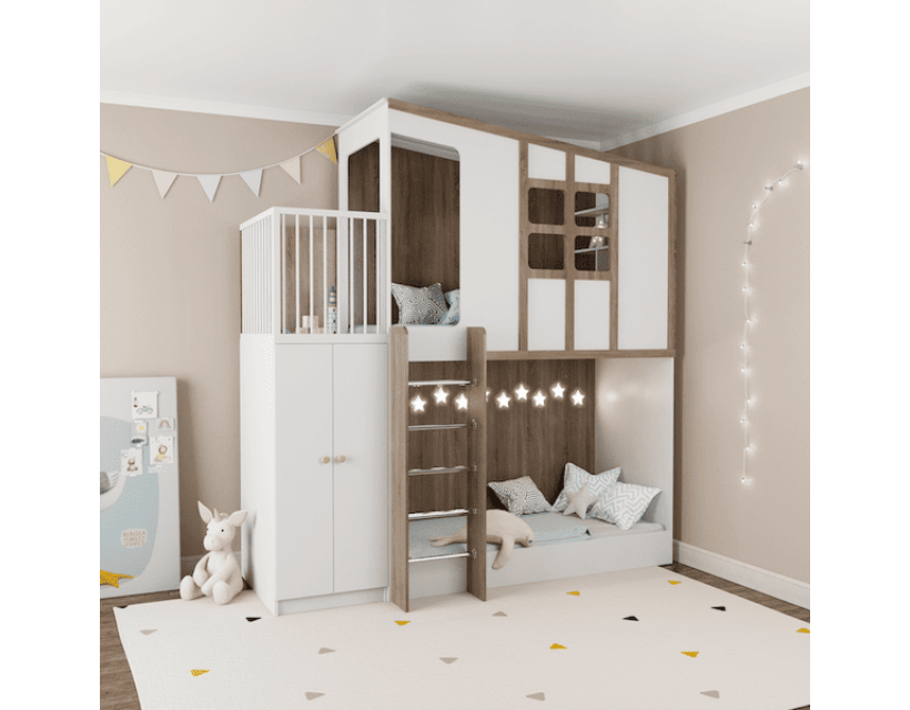 Детская двухъярусная кровать «Домик» со шкафом ИНСТ 719