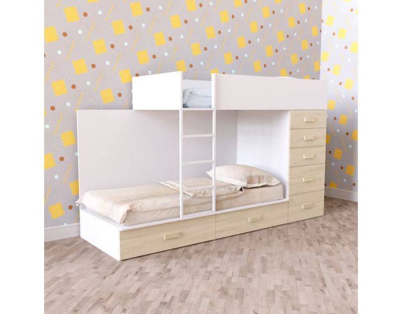 Розміри: Висота 1500 мм.Довжина 2600 мм.Глибина 900 мм.Спальні місця 800 мм*1900 мм. Таке ліжко вразить вас своєю компактністю, місткістю та практичністю. Колір та розмір можна підібрати індивідуально за бажанням клієнта. Цей товар виготовляється на замовлення. Термін виготовлення залежить від завантаженості заводу. Кольори на вибір в асортименті. Можливе виготовлення у комбінації з кількох кольорів. Яскраве дитяче ліжко горище для двох дітей з висувними ящиками Якщо ви хочете, щоб у кімнаті у Ваших дітей було більше простору, Вам обов'язково потрібно придбати двоярусне ліжко. Вона відмінно підійде в кімнату як для дівчаток, так і для хлопчиків завдяки зовнішньому лаконічному оформленню. Колір та розмір можна підібрати індивідуально за бажанням клієнта. Додатково до базової моделі ми можемо встановити для зручності: ✔Додатковий ортопедичний матрац. ✔ Також рекомендуємо Вам вибрати постільну білизну до ліжечка ТУТ Ціну на додаткові позиції уточнюйте у менеджера.