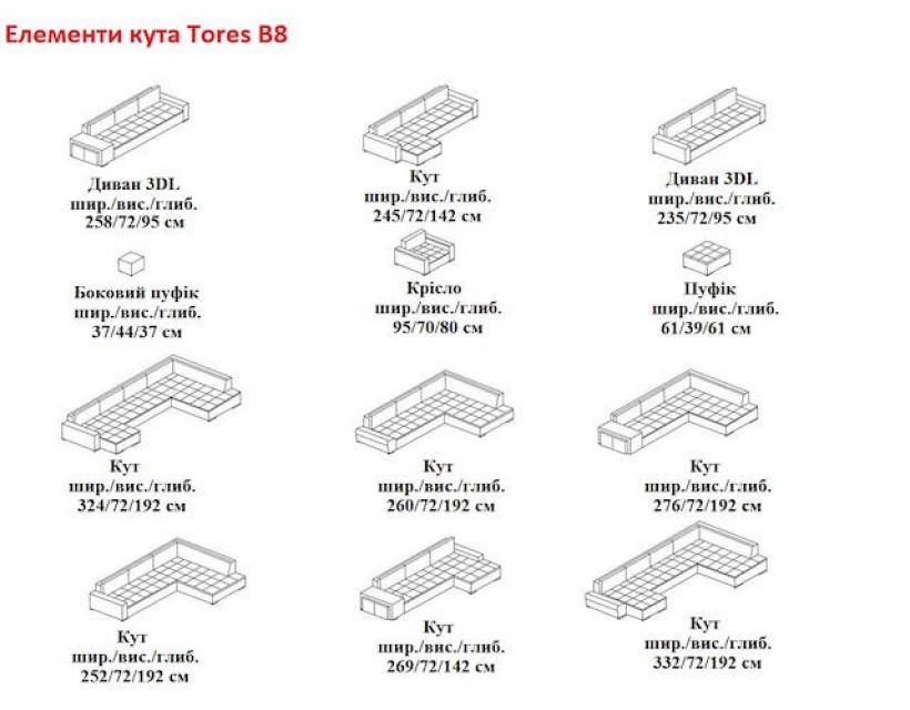 ДСП шлифованного и ламинированного, фанеры. p> Купить Диван угловой Tores B8 Blonski (Блонски) недорого в интернет-магазине мебели Мебли Даром.