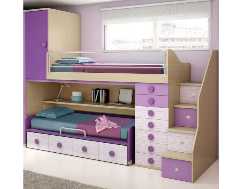 Размеры: Высота 2400 мм Длина 2700 мм Глубина 1000 мм Спальные места 800 мм* 1900 мм Цвет и размеры кровати можно заказать индивидуально! Благодаря огромному выбору цветового решения, вы подберете именно ту модель, которая понравится вашему ребенку. Такая кровать поразит вас своей компактностью, вместительностью и практичностью. Цвет и размер можно подобрать индивидуально по желанию клиента. Данный товар изготавливается под заказ. Срок изготовления зависит от загруженности завода. Цвета на выбор в ассортименте. Возможно изготовление в комбинации из нескольких цветов. Двухъярусная кровать чердак для двоих детей с выдвижными ящиками и выкатной кроватью внизу Если вы хотите, чтобы в комнате у ваших детей было больше пространства, вам нужно приобрести двухъярусную кровать. Она отлично подойдет в комнату как для девочек, так и для мальчиков. Нижняя кровать является выкатной. Цвет и размер можно подобрать индивидуально по желанию клиента. Дополнительно к базовой модели мы можем установить для Вашего удобства: ✔Дополнительный ортопедический матрас.