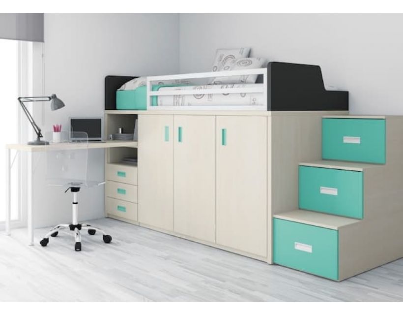 Розміри: Ширина 2364 мм Висота 1300 мм Глибина 1600 мм Спальне місце 800 мм * 1900 мм Колір та розмір можна підібрати індивідуально! Завдяки величезному вибору колірного рішення ви підберете саме ту модель, яка сподобається вашій дитині. Таке ліжко вразить вас своєю компактністю, місткістю та практичністю. Колір та розмір можна підібрати індивідуально за бажанням клієнта. Цей товар виготовляється на замовлення. Термін виготовлення залежить від завантаженості заводу. Кольори на вибір в асортименті. Можливе виготовлення у комбінації з кількох кольорів. Дитяче ліжко горище з шафою та столом ДК 708 Ліжко чудово впишеться та ефектно доповнить інтер'єр дитячої кімнати. Колір та розмір можна підібрати індивідуально за бажанням клієнта. Додатково до базової моделі ми можемо встановити для Вашої зручності: ✔Додатковий ортопедичний матрац.