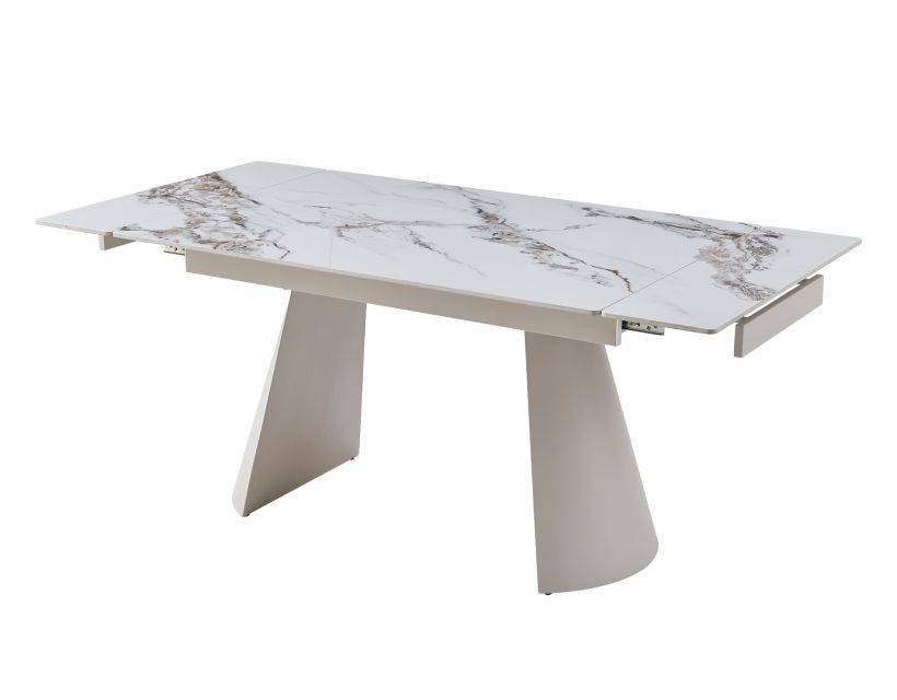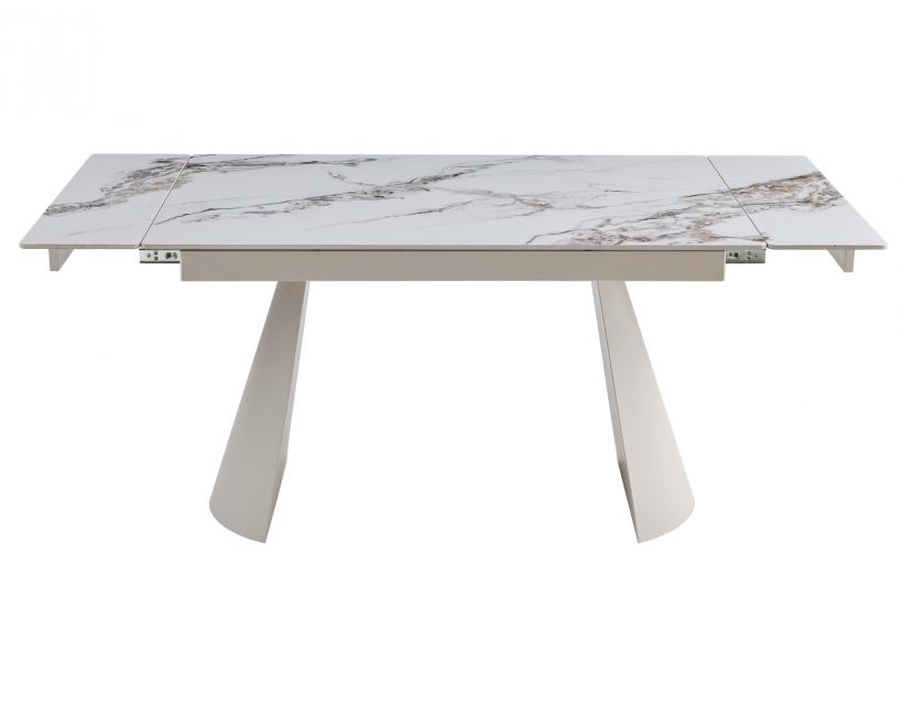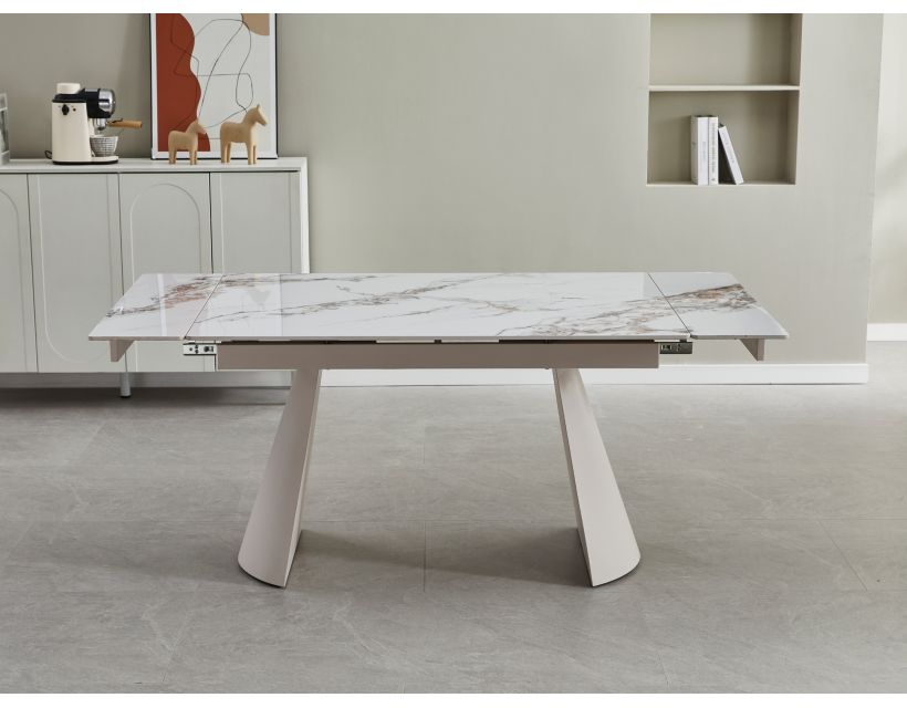Керамический стол Сорренто TML-1301 голден вайт + капучино создан для интерьеров, где ценят гармонию, стиль и внимание к деталям. Его глянцевая столешница в изысканном оттенке голден вайт напоминает светлый мрамор, мягко отражает свет и наполняет пространство теплом и легкостью. Поверхность гладкая и приятная наощупь — она не только украшает интерьер, но и прекрасно выдерживает ежедневные нагрузки.Металлическое основание в цвете капучино добавляет конструкции надежности и визуального баланса. Оно выглядит солидно, но при этом не утяжеляет общий образ — наоборот, подчеркивает современную легкость дизайна. Благодаря продуманному боковому механизму стол легко увеличивается с 130 до 180 см, превращаясь в просторную поверхность для встреч с друзьями или семейных ужинов. Трансформация происходит плавно и уверенно, словно отточенный жест.Сорренто TML-1301 гармонично вписывается как в светлые, так и в контрастные интерьеры, подчеркивая их стилевую цельность. Он становится не просто мебелью, а центром притяжения — акцентом, который наполняет дом уютом, завершенностью и желанием собираться за ним снова и снова.