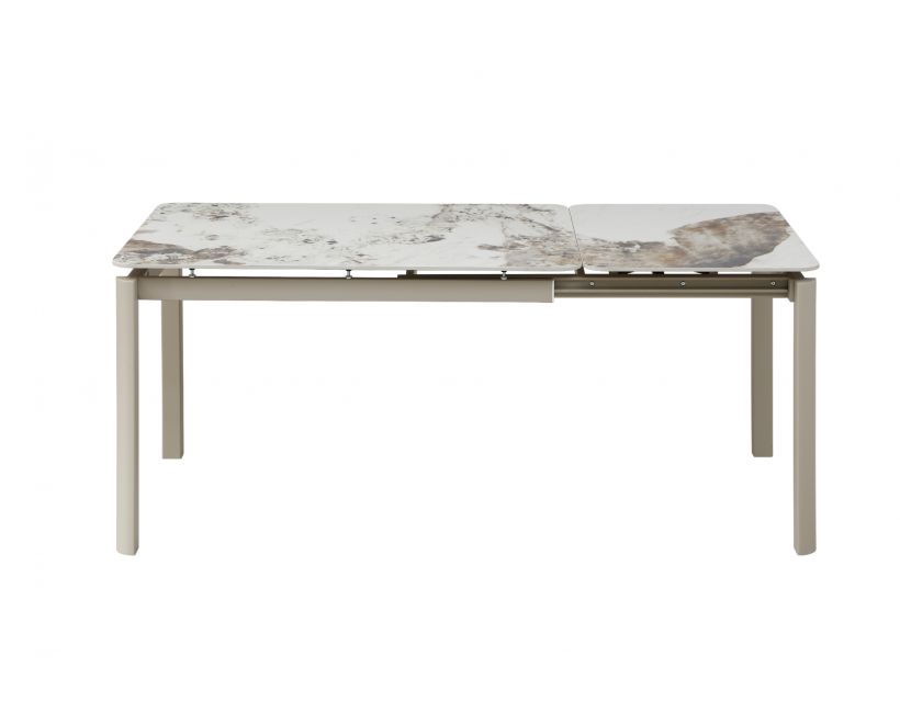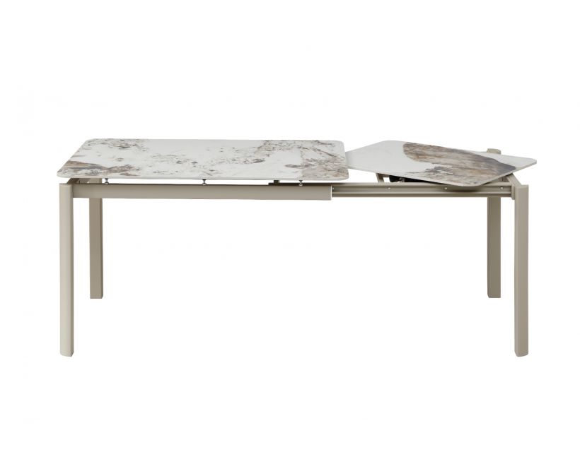 Керамический стол «Тревизо» TML-1350-1 в оттенке калакатта винтаж + бежевый — это сочетание современной эстетики, функциональности и премиальных материалов. Изящная столешница с эффектом натурального камня добавляет интерьеру глубины и характера, а сдержанная бежевая основа гармонично дополняет общий образ, создавая ощущение лёгкости и баланса.Глянцевая керамическая поверхность не только выглядит роскошно, но и отличается высокой практичностью. Она устойчива к температурным воздействиям и ежедневному использованию, что делает стол идеальным как для повседневных обедов, так и для приёма гостей. Приятный блеск поверхности усиливает эффект натурального камня и придаёт интерьеру элегантности.Прямоугольная форма стола является универсальной и удобной для организации пространства. В сложенном виде его размеры составляют 120×80 см, что идеально подходит для компактных кухонь или столовых. Благодаря боковому поворотному автоматическому механизму стол легко трансформируется до длины 180 см, позволяя комфортно разместить больше гостей без лишних усилий.Стол «Тревизо» — это идеальное решение для тех, кто ценит стиль, практичность и возможность легко адаптировать пространство под разные сценарии жизни.
