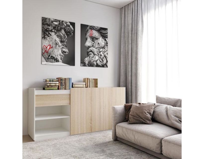 Комод без ручек с двумя дверцами, ящиком и полками RS-3 Moreli (Морели) Белый/Дуб Сонома в интернет-магазине "Мебли Даром"