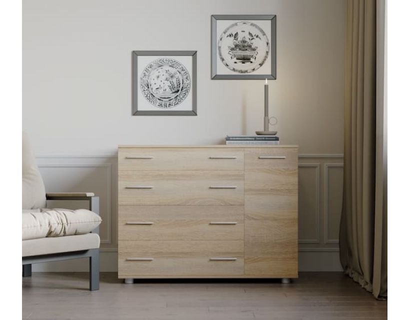 Не упустите возможность улучшить ваше пространство! Комод изготовлен из качественного материала в цвете сономного дуба, что гарантирует долговечность и устойчивость к износу. Идеальный размер 100х38х73 см позволяет удобно разместить комод, даже в малогабаритных комнатах. Инвестируйте в комфорт и стиль вашей спальни с комодом Эверест уже сегодня!