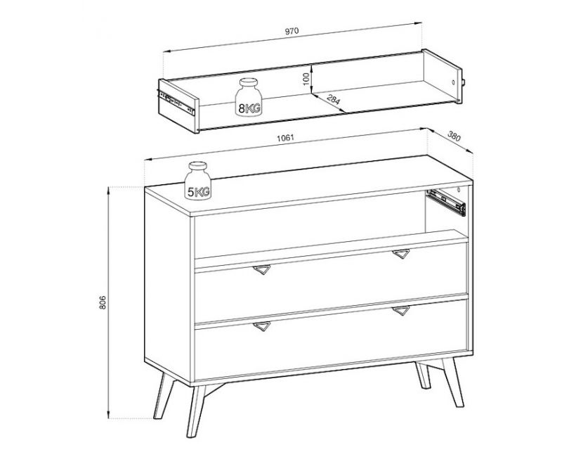 Благодаря трем просторным ящикам, этот комод обеспечивает достаточно места для хранения ваших вещей. Вы сможете организовать свое пространство, сохраняя порядок и легкость доступа ко всем необходимым предметам. Изготовленный из качественных материалов, он прослужит вам долгие годы, сохраняя свой первоначальный вид.