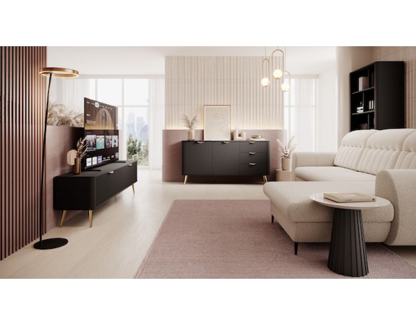 Откройте для себя стильный комод Perfect Home Ланте, который станет идеальным дополнением вашего интерьера. Его элегантный черный цвет и золотые ножки придают неповторимый шарм, а также подчеркивают современный дизайн. Комод не только выглядит впечатляюще, но и обеспечивает достаточно места для хранения ваших вещей благодаря трем удобным ящикам и одной дверце.