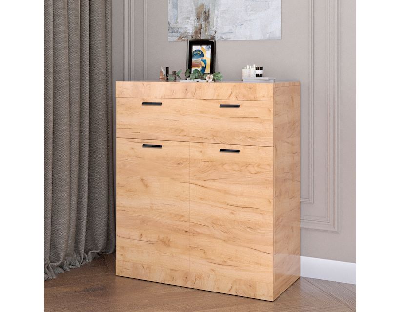 Откройте для себя элегантность и практичность комода Эверест Соната-4, созданного для тех, кто ценит качество и стиль. Его утонченный дизайн в цвете дуб крафт золотой не только украшает интерьер, но и придает ему шарм. Этот комод станет идеальным дополнением к вашей гостиной, спальне или кабинету, предоставляя вашему пространству тепла и уюта.