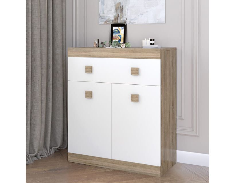 Откройте для себя комод Эверест Соната-4, который станет настоящим украшением вашего интерьера. Это элегантное мебельное изделие изготовлено из качественных материалов, обеспечивающих не только стильный вид, но и долговечность. Дуб сонома в сочетании с белыми элементами придает современный вид, а продуманная планировка с дверью и ящиком позволяет удобно хранить ваши вещи.
