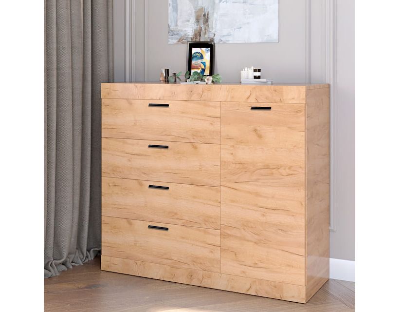 Откройте для себя идеальное сочетание элегантности и практичности с комодом Эверест Соната-5. Его уникальный дизайн в оттенке дуба золотой крафт не только украсит ваш интерьер, но и станет функциональным решением для хранения вещей. Четыре вместительных ящика и дверцы обеспечивают достаточно места для всех ваших необходимостей, от одежды до аксессуаров.