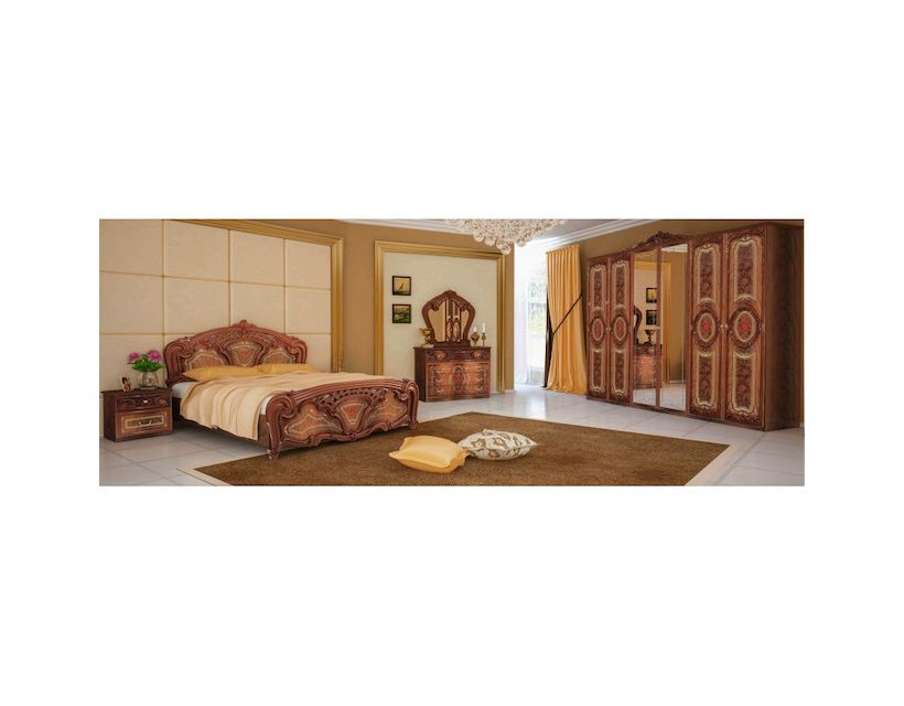 Если вы мечтали об изысканной, сказочной спальне, то комплект Реджина именно для вас. Невероятно нежный, уютный дизайн наполнит комнату уютом и спокойствием. Элементы, которые принадлежат в набор создадут максимально комфортную зону отдыха и здорового сна.Дополнительные сведения:- Цвет изделия может отличаться от того, что вы видите на экране. Это может быть связано с настройками вашего экрана.- Обратите внимание на то, что большинство мебели приезжает в разобранном состоянии! В комплект поставки входят все комплектующие и инструкция для сборки. Сборка мебели просчитывается отдельно и зависит от комплектации производителя. За дополнительной информацией обращайтесь к менеджерам магазина.Комплект №2 спальни Реджина (Regina) состоит из таких элементов мебели, как:1. Шкаф 6-ти дверный (ш/ в/ г, см) RG-16-RB/PR/PN - 279/ 232/ 65, см - 1 шт.;2. Комод 4шх (ш/ в/ г, см) RG-64-RB - 118/ 82/ 49, см - 1 шт.;3. Зеркало (ш/ в/ г, см) RG-81-RB/PR/PN - 101/ 110/ 8, см - 1 шт.;4. Кровать (1800х2000) (ш/ в/ г, см) RG-38-RB/PR/PN - 204/ 123/ 214, см - 1 шт.;5. Прикроватная тумба (ш/ в/ г, см) RG-52-RB/PR - 53/ 49/ 39, см - 2 шт.;Дополнительно в комплект спальни, рекомендуем приобрести ортопедический матрас.Цветовая гамма:Радика беж Перо рубино Описание материалов:ЛДСП (ламинированная древесно-стружечная плита) - это шлифованная ДСП плита, покрытая стойкой миламиновой пленкой. Прочность ламинированного ДСП образуется под действием температуры, вследствие растекания смолы на поверхность плиты. Наилучшая толщина плиты ЛДСП для мебельных изделий должна быть от 10 мм до 22 мм. Пленочная оболочка ЛДСП не позволяет парам альдегида распространяться с поверхности ДСП, одновременно делает ламинированную плиту гигиенический и экологически безвредным материалом. Ламинированное ДСП применяют при изготовлении мебели для кухни и дома в целом, офисной мебели и тому подобное.Пластик - это материал, созданный из нетоксичного, экологически чистого полипропилена. Мебель из пластика являются легкими и не требуют пристального ухода. Кроме того, пластик прекрасно моется, даже без специальных средств.Ортопедические ламели - это буковые гибкие и упругие планки, способны прогибаться под действием давления тела, тем самым предоставляя ортопедический эффект. Планки крепятся к деревянного или металлического каркаса. Ортопедические ламели не только увеличивают ортопедическое действие специального матраса, но и служат уменьшению нагрузок на него, одновременно обеспечивает долговременный срок эксплуатации матраса, не теряя лечебно-профилактических свойств. Отличительной характеристикой является то, что выпуклая форма способствует улучшению опоры для матраса, обеспечивая попадание нужного количества воздуха, который избавляет возникновение бактерий.