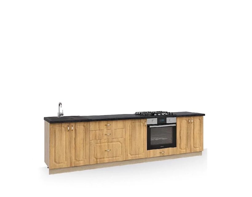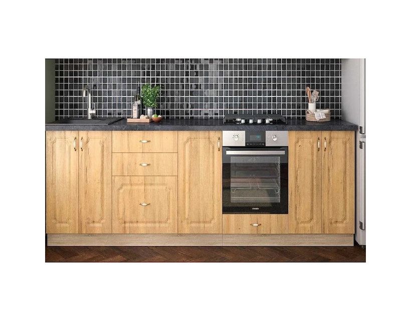 | Наполнение | В комплект кухни входит фурнитура - керамические ручки, телескопические направляющие ящиков кухни, фирменные петли, цоколь. |