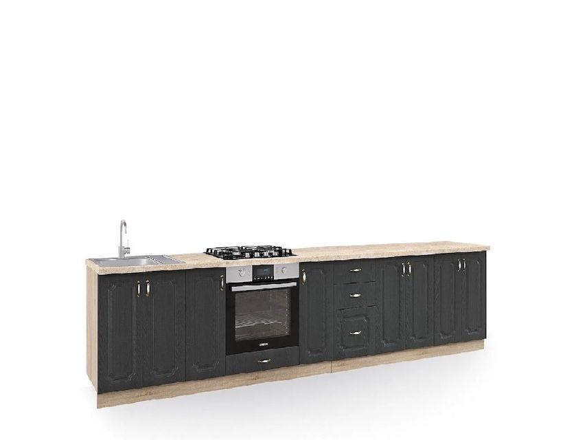 | Наполнение | В комплект кухни входит фурнитура - керамические ручки, телескопические направляющие ящиков кухни, фирменные петли, цоколь. |