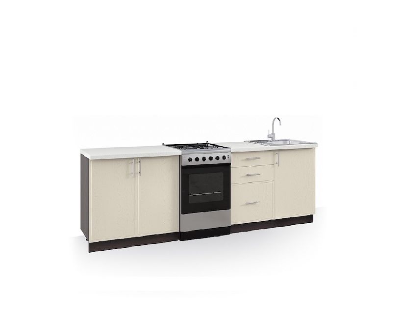 | Наполнение | В комплект кухни входит фурнитура - пластиковые ручки, роликовые направляющие ящиков кухни, фирменные петли, цоколь. |