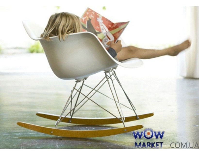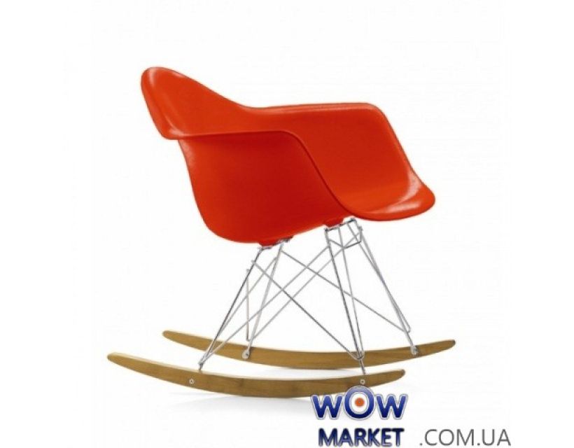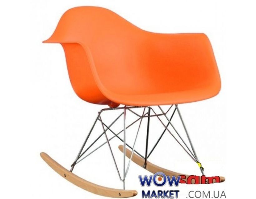 Кресло-качалка из монолитного пластика ABS, ножки деревянные, оригинальная форма.