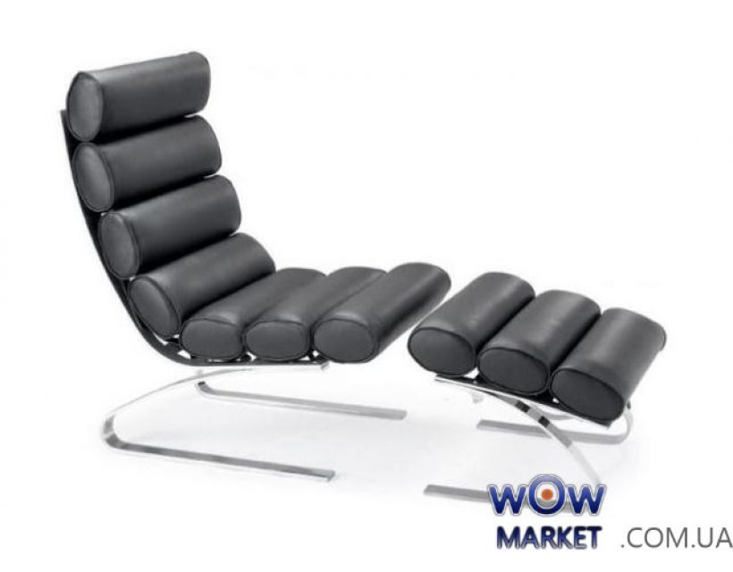Кресло с оттоманкой, шезлонг, материал кожзам, каркас из нержавеющей стали, отстегивающиеся мягкие части.| черный | белый |