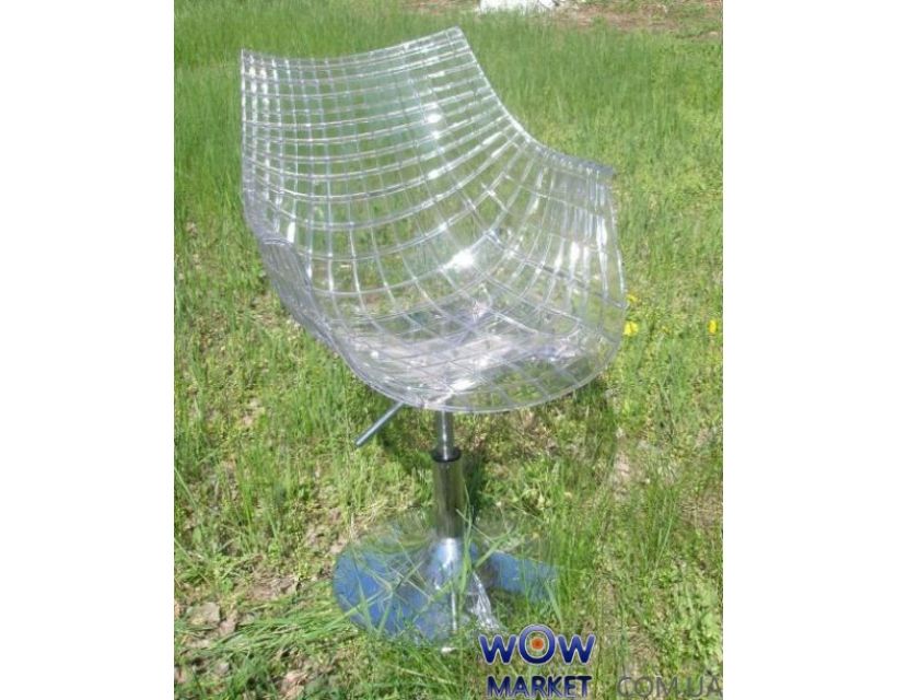 Кресло дизайнерское, материал пластик АБС, регулируется по высоте с помощью газлифта, хромированная основа, блин круглый, поворотное, 58*60 см, высота от пола до сиденья 40 см и до 54 см, высота сидения 40 - 50 см.