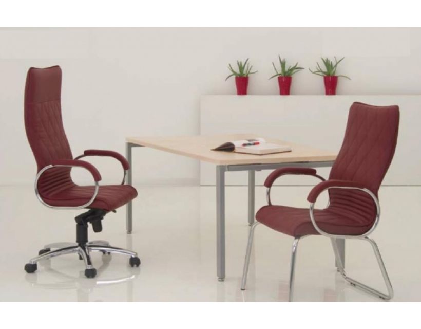 Эргономичные сидение и спинка сделаны на базе целостного каркаса, сидение обладает закругленный фронтальный край. Кресло оборудовано механизмом «Мультиблок». Железные подлокотники с обитыми кожей накладками, гладкая алюминиевая основа.