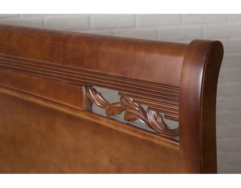 Двухспальная кровать Шопен из серии мебели Прайд изготовлена из массива натурального дерева ольхи и станет отличным дополнением Вашего интерьера. Изножье и изголовье кровати с элементами резьбы.