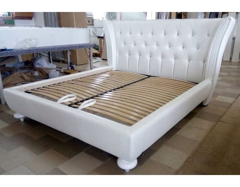 Ліжко з м'якою оббивкою і високим узголів'ям. В якості основи спального місця використовується підйомний металевий каркас з ортопедичними буковими ламелями (відстань між ламелями 2,5-3см.). Каркас піднімається вгору від підніжжя на 60 ° за допомогою пневматичного підйомного механізму на газових амортизаторах, що забезпечує доступ до об'ємного білизняному скриньки. Підйомний механізм працює дуже плавно, безшумно і витримує великі навантаження.