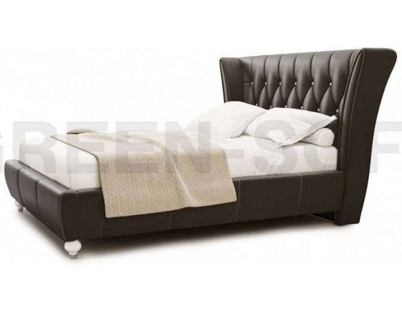 Ліжко Greensofa Люкс Емма - модель двоспальному ліжку в стилі модерн. Каркас виконаний з масиву дерева, сосна, покритий м'якою оббивкою спинки - тканина / штучна шкіра.