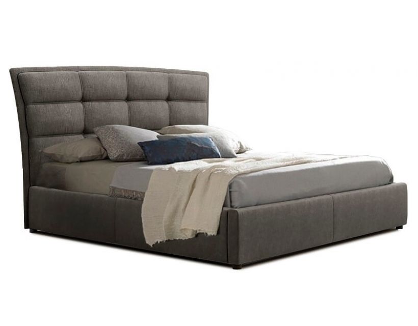 Кровать с мягкой обивкой и высоким изголовьем. В качестве основы спального места используется подъемный металлический каркас с ортопедическими буковыми ламелями (расстояние между ламелями 2,5-3см.). Каркас приподнимается вверх от изножья на 60° при помощи пневматического подъемного механизма на газовых амортизаторах, что обеспечивает доступ к объемному бельевому ящику. Подъемный механизм работает очень плавно, бесшумно и выдерживает большие нагрузки.
