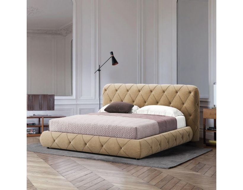 Кровать с мягкой обивкой и высоким изголовьем. В качестве основы спального места используется подъемный металлический каркас с ортопедическими буковыми ламелями (расстояние между ламелями 2,5 см.). Каркас приподнимается вверх от изножья на 60° при помощи пневматического подъемного механизма на газовых амортизаторах, что обеспечивает доступ к объемному бельевому ящику. Подъемный механизм работает очень плавно, бесшумно и выдерживает большие нагрузки.