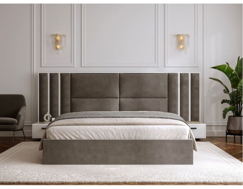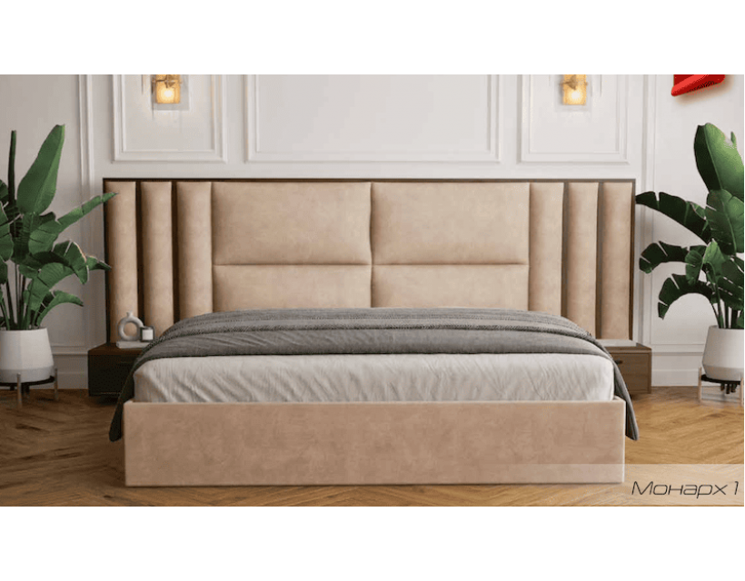Кровать Монарх — королевский акцент в современной спальне. Высокое мягкое изголовье с глубокими вертикальными вставками создает поразительный акцент на стене. Гармонично дополняется двумя подвесными тумбами в тон кровати – это не просто мебель, а цельная композиция для настоящих ценителей стиля и пространства. Каркас из дерева, обитый износостойкой тканью, дарит комфорт и долговечность.