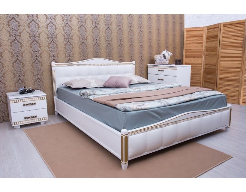 Купить деревяную кровать Олимп Прованс патина и фрезеровка мягкая спинка квадраты с механизмом возможно в следующих цветах: