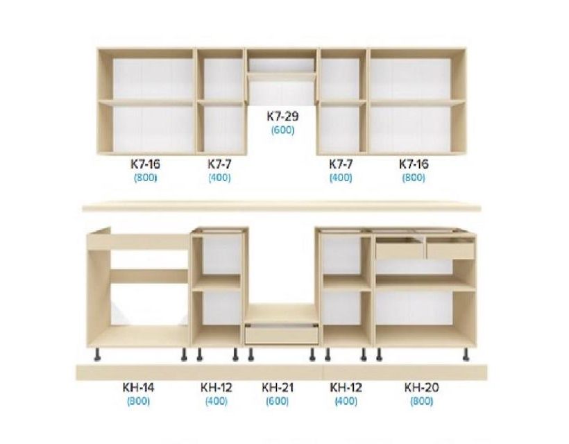 | Наполнение | В комплект кухни входит фурнитура - керамические ручки, телескопические направляющие ящиков кухни, фирменные петли, цоколь. |