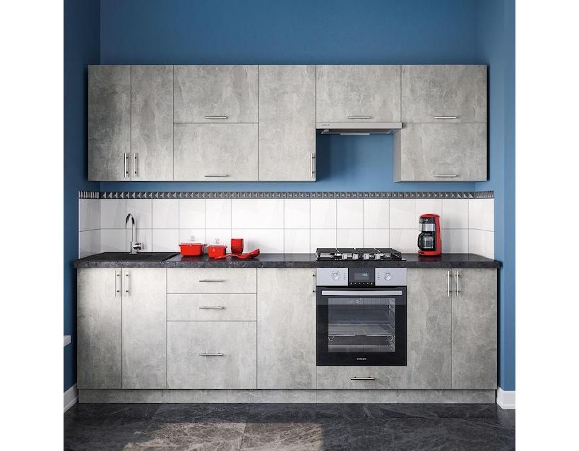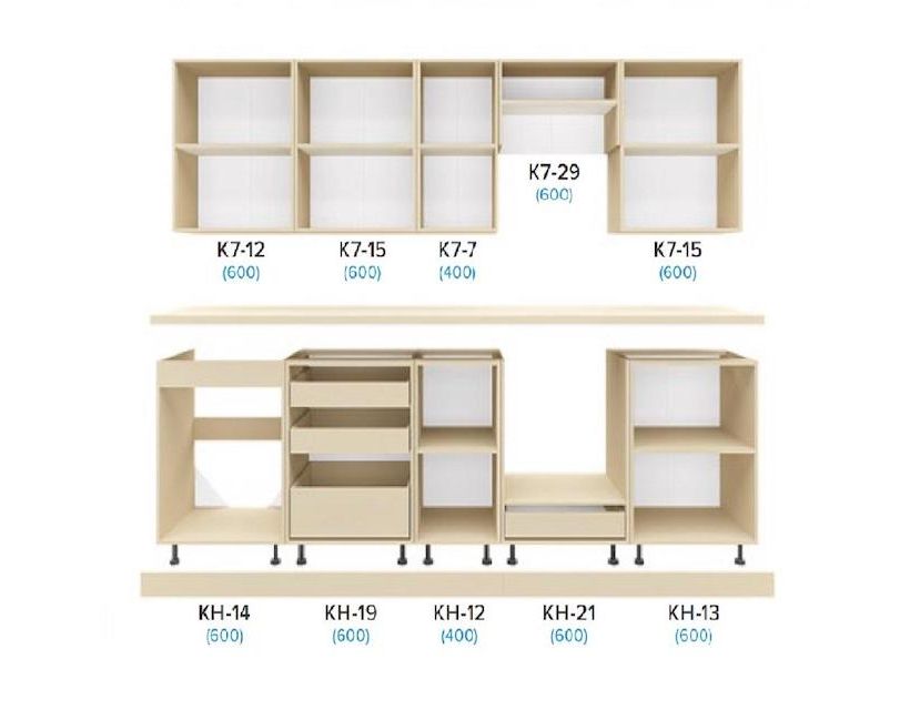 | Наполнение | В комплект кухни входит фурнитура - пластиковые ручки, роликовые направляющие ящиков кухни, фирменные петли, цоколь. |
