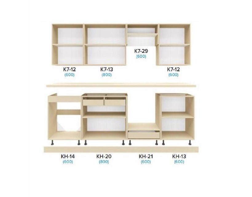 | Наполнение | В комплект кухни входит фурнитура - пластиковые ручки, роликовые направляющие ящиков кухни, фирменные петли, цоколь. |