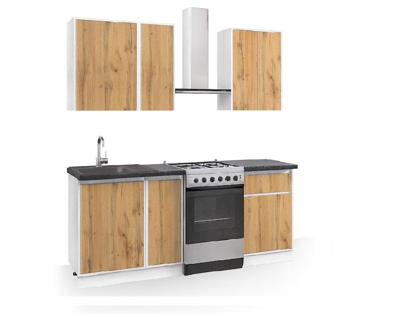 | Наполнение | В комплект кухни входит фурнитура - ручки на фасаде отсутствуют, контактный способ открытия фасадов, роликовые направляющие ящиков кухни, фирменные петли, цоколь. |