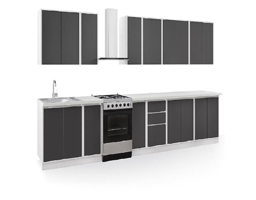 | Наполнение | В комплект кухни входит фурнитура - ручки на фасаде отсутствуют, контактный способ открытия фасадов, роликовые направляющие ящиков кухни, фирменные петли, цоколь. |