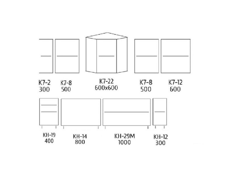| Дополнительно | Ширина правой части кухни – 1100 мм. Ширина левой части кухни – 800 мм. Столешница и мойка покупается отдельно. |