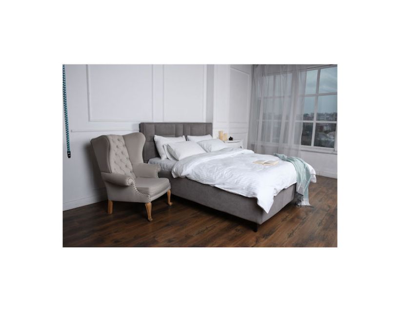 СТАНДАРТ - базовая сборка кровати, включает в себя разборной металлический каркас, обработанный порошково-полимерным окрашиванием, комплект буковых гнутоклеенных ламелей, пластиковые опорные ножки и обивку высоких мягких царг (боковые поверхности кровати). В качестве ткани Вы можете выбрать рогожку, кожзам, велюр, шенилл, микрофибру либо искусственную замшу.