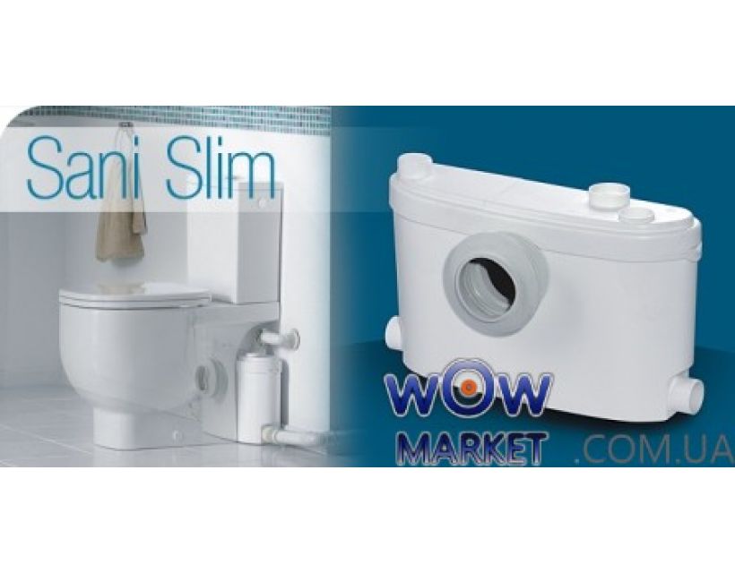 Насос-измельчитель SaniSlim (СаниСлим) самая тонкая (толщина всего 13 см), домашняя бесшумная модель, предназначенная для откачивания сточных вод при подключении унитаза с горизонтальным выходом. Предназначен для откачивания использованной воды от умывальника, унитаза, биде и душа. Спасибо технологии "Сайленс" степень шума совсем низкий и практически не отличается от фонового.