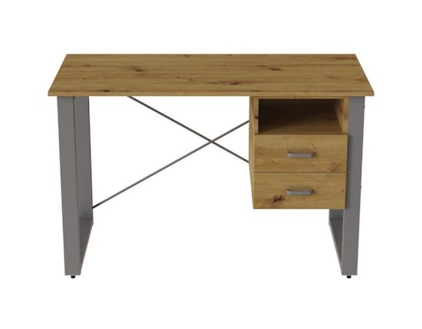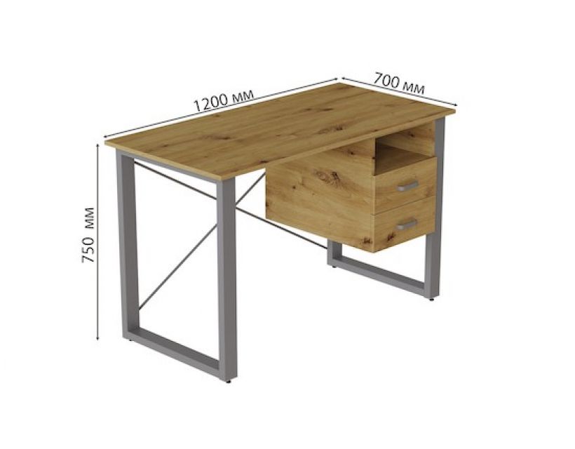 Откройте для себя письменный стол Ferrum-decor Оскар, который станет идеальным дополнением к вашему рабочему пространству. Современный дизайн в сером цвете, дополненный элементами из ДСП дуба Артизан, создает эстетически привлекательную атмосферу, вдохновляющую продуктивную работу. Компактные размеры этого стола позволяют легко вписать его в любое помещение, обеспечивая достаточно места для всех ваших рабочих материалов.