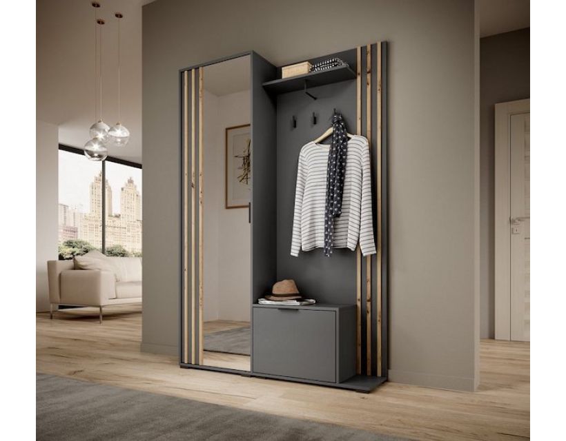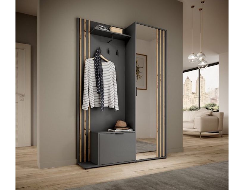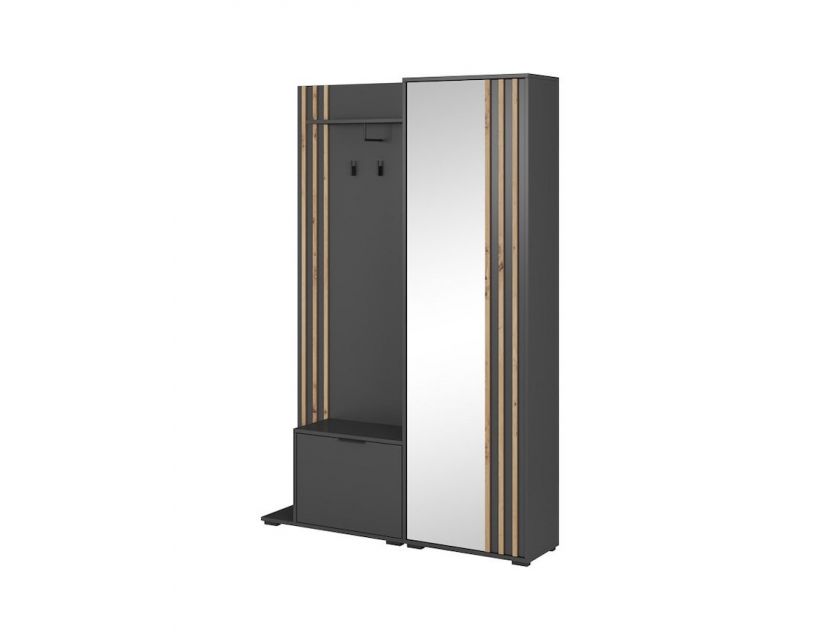 Создайте стильную и уютную атмосферу в вашем доме с прихожей с зеркалом Perfect Home Нелли. Этот элегантный двухдверный комплект в цветах графит и дуб артизан станет идеальным дополнением к вашему интерьеру. Благодаря современному дизайну, он не только украсит ваше пространство, но и обеспечит необходимую функциональность для удобного хранения вещей.