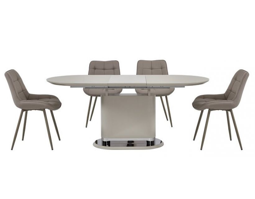 Обеденный стеклянный раскладной стол TMM-56 капучино. Стильная модель с стеклянной столешницей будет неповторимым дополнением внутреннего убранства Вашей кухни либо гостиной. Ножки из блестящего металла оснащены накладками, мешающими скольжению. Углы стеклянной поверхности закруглены, а кромки безупречно отшлифованы. Для того чтобы купить стол обеденный TMM-56 капучино в нашем интернет-магазине, необходимо сделать только несколько кликов Вашей мышкой. Вопросы задавайте нашим менеджерам.