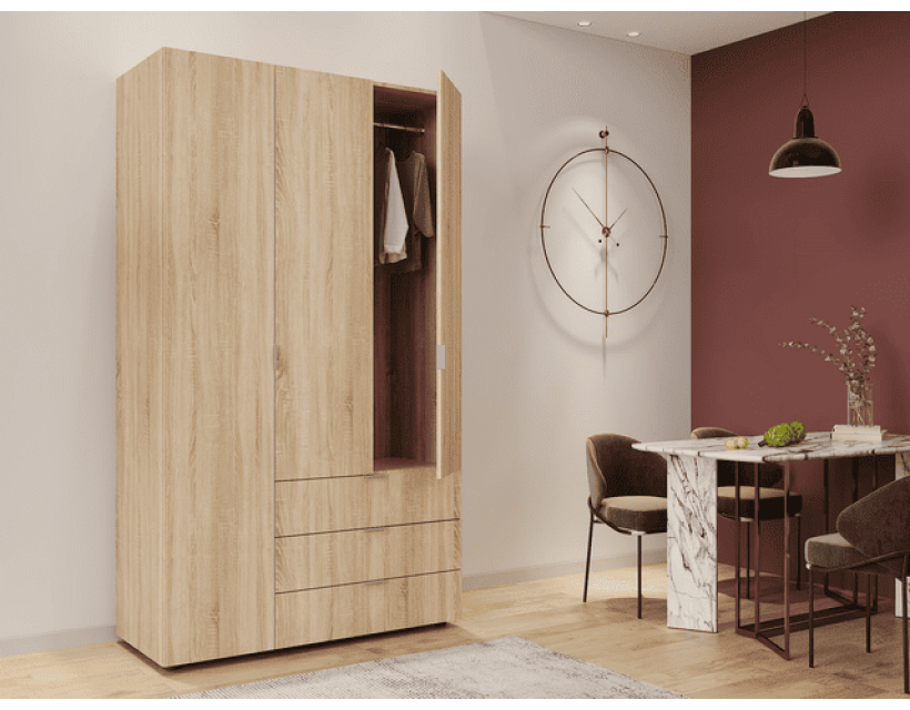 Распашной шкаф для одежды Гелар Doros цвет Дуб сонома 3 двери ДСП 116,2х49,5х203,4