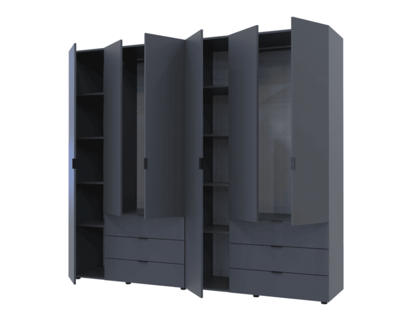 Распашной шкаф для одежды Гелар комплект Doros цвет Графит 3+3 двери ДСП 232,4х49,5х203,4