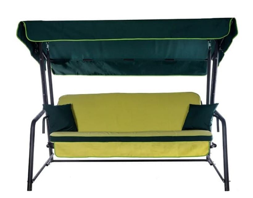 Каркас садовой качели изготовлен из стальной трубы диаметром 45 мм и покрыт полимерной краской, которая способствует повышению износостойкости качели, а именно, не растрескивается и защищает металл от ржавчины.
