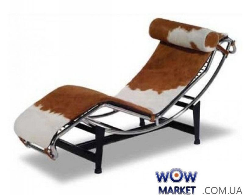 Шезлонг ЛЕКОР, натуральный мех ПОНИ,части из металла и нержавейщей стали inox. Верхняя часть шезлонга снимается, угол наклона регулируется, подголовник отстегивается, копия известного архитектора Ле Корбузье.