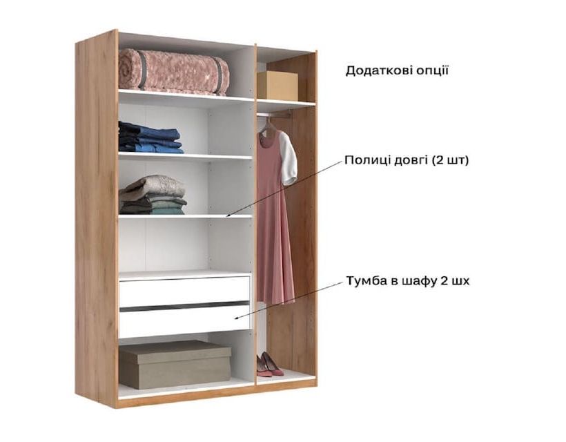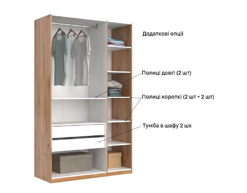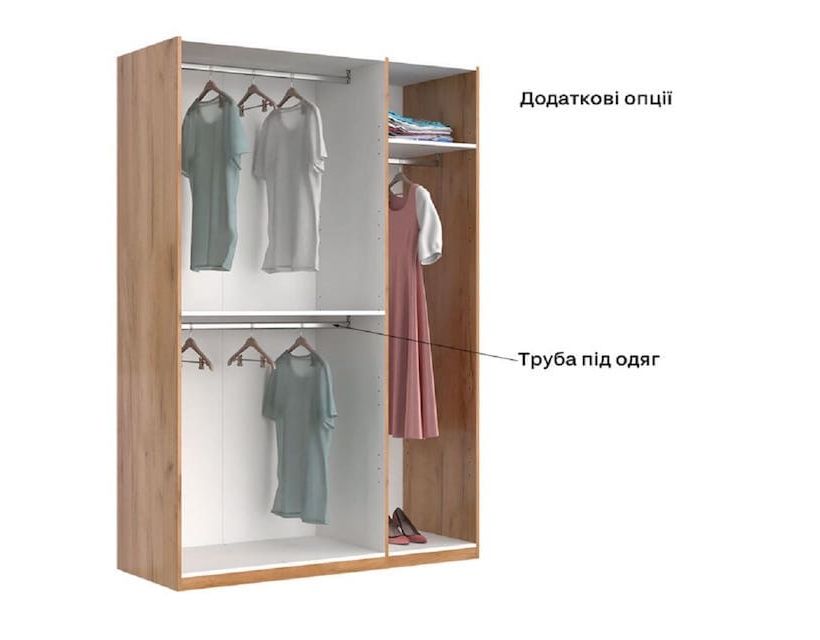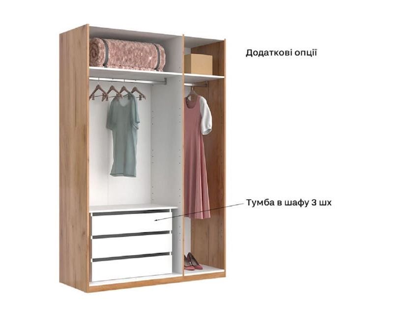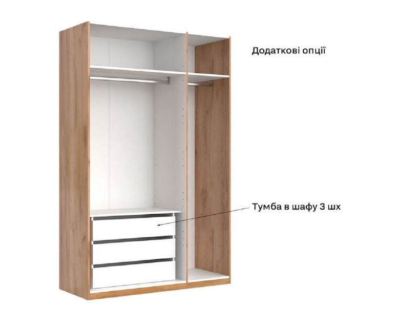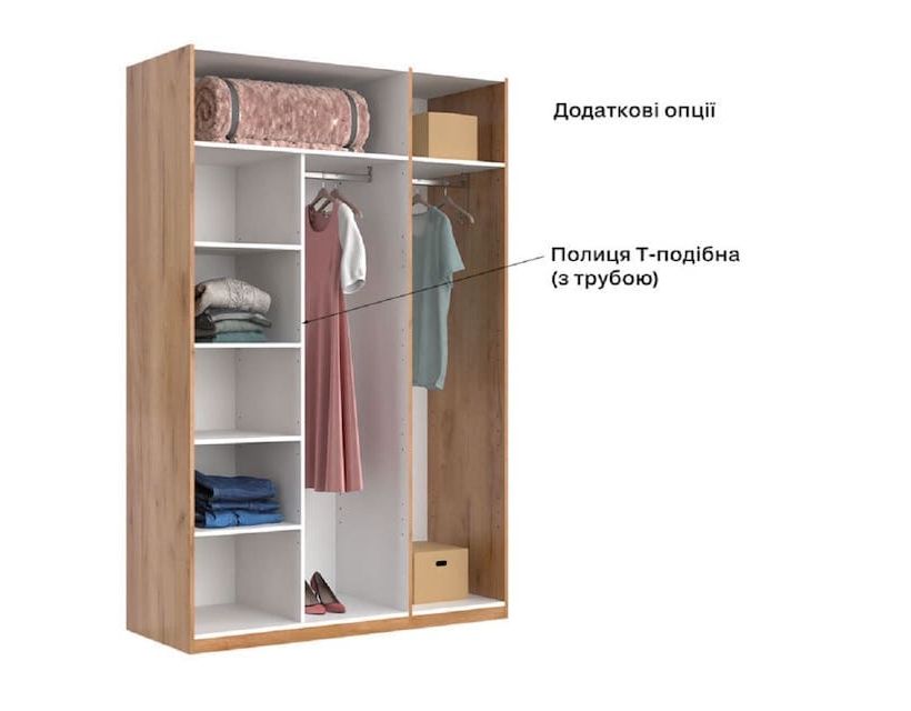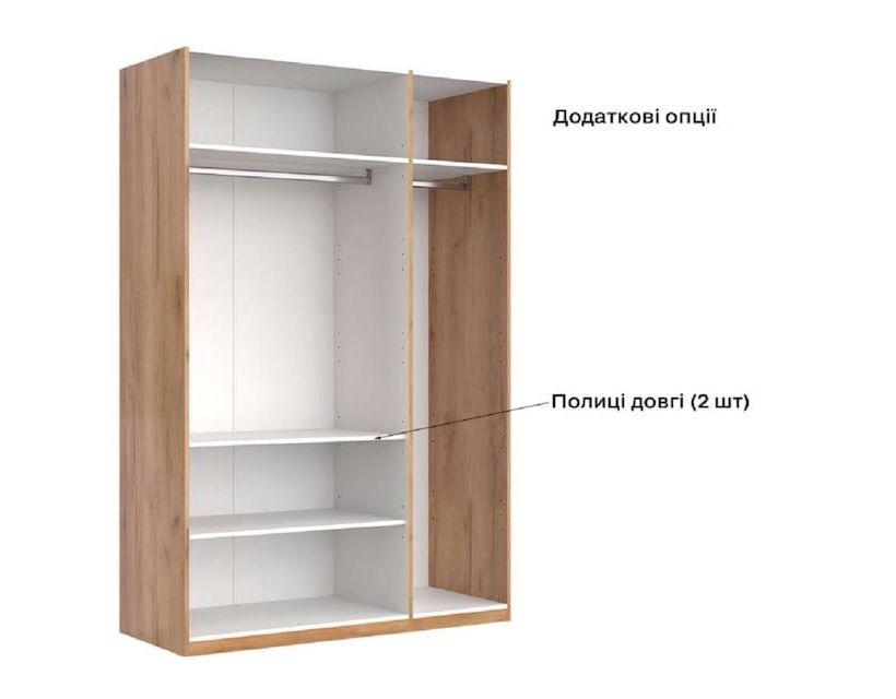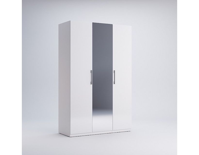 Шкаф имеет 3 дверцы белого цвета и зеркало по середине. Такие шкафы часто используют в средних комнатах и советуем сразу приобрести комод для большей вместимости одежды. Материалы из которых они изготавливаются имеют отличное качество и прослужат вам довольно долгое время.